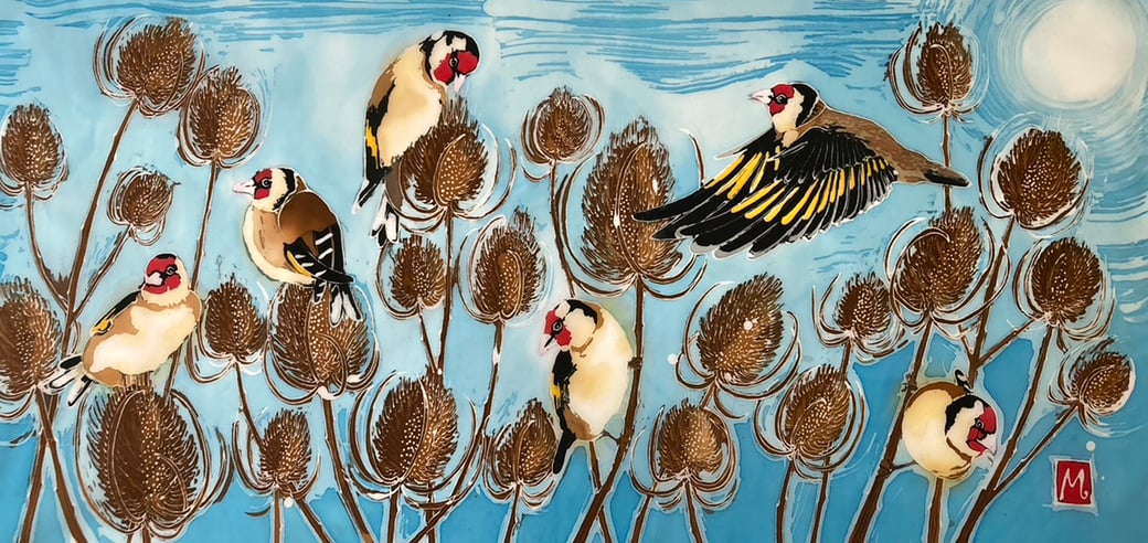 New piece 'Goldfinches on teasels' is now SOLD, it is also available as a limited Fine Art print of 50.