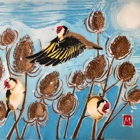 My designs are a mixture of well observed subjects in stylised and contemporary environments, rich in colour and contrast. Each piece has up to 25 applications of wax and dye and uses a range of different batik processes, such as cracking and dipping, sgraffito, kystka and tjanting work. This focus calms me and takes me into another world of colour, nature and beauty, where I really do feel I can escape and create artworks that I hope inspire a similar level of relaxation in those that buy my works for their homes or workplace art.