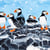 I had always wanted to go to the Farne Islands, so in 2015 I finally made the long treck up north for a week of what turned out to be perfect weather and incredible light. This Batik was created after a day trip to inner Farne, where this group of Puffins posed beautifully on the rocks with the bright sparkling blue sea behind them. The design has been cropped to fit a smaller square print, but is also available in its entirety.