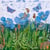 The detailed blue of the Himalayan poppies (Meconopsis) sway in the breeze, with a holly Blue, small Blue, bees and Adonis Blue Butterfly fluttering around them. The background shows the Malvern hills with a delicate blue crackle in the pale white sky above. The foreground is rich with green foliage and brown seedpods from the poppies. The original batik was created at the same time as the welsh poppy and malvern hills design, this one was for a customer who wanted blues and greens only so the Himalayan poppies were the perfect choice of flower!