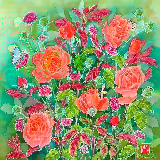 This delicate spring inspired design has recently been made into a stunning conditioned silk 36" scarf